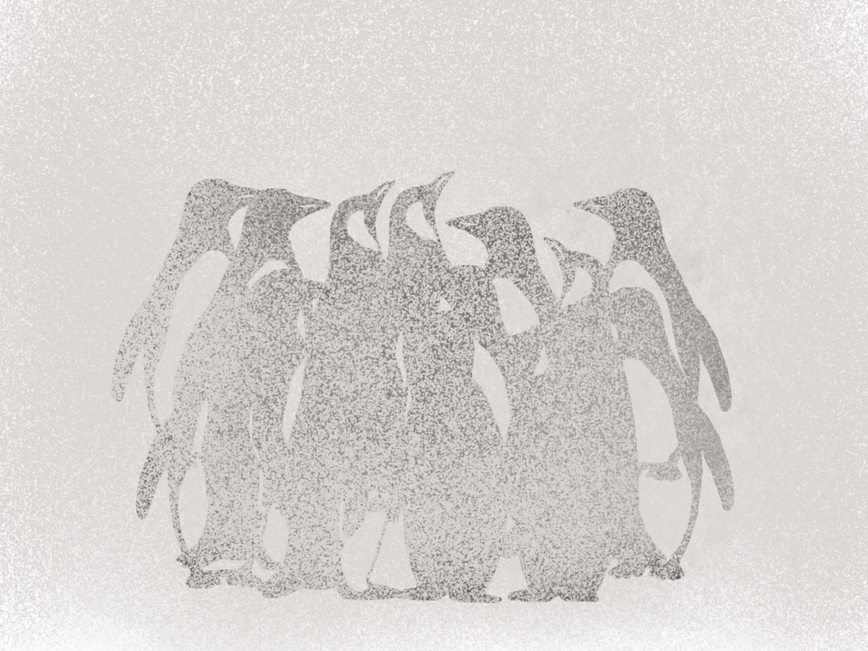 Each penguin takes his turn on the outside of the group, the place where the winds are stronger and colder. When a penguin gets too cold to stay on the outside any longer, he shuffles toward the warmer center. There the body heat of the penguins around him thaws him out once again.